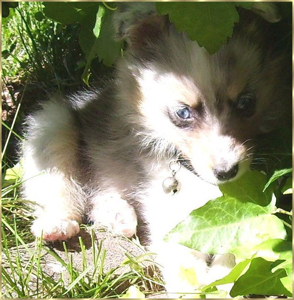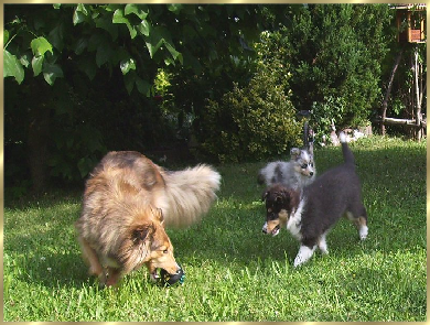 Die Sheltiesmädels erforschen den Garten.